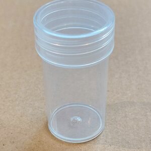 Väike plastpudel, 5ml. Kaasas keeratav ja suletav kork ning tilgutamise otsik. Komplektis on 10 plastpudelit.