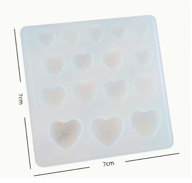 Pealt kumerate ja säbruliste südamete silikoonvorm. Ühe vormiga on võimalik teha nelja erinevat suurust südame kuju. Vormi mõõdud on ca 6,6cm x 6,6 cm. Fotol märgitud mõõdud on umbkaudsed.