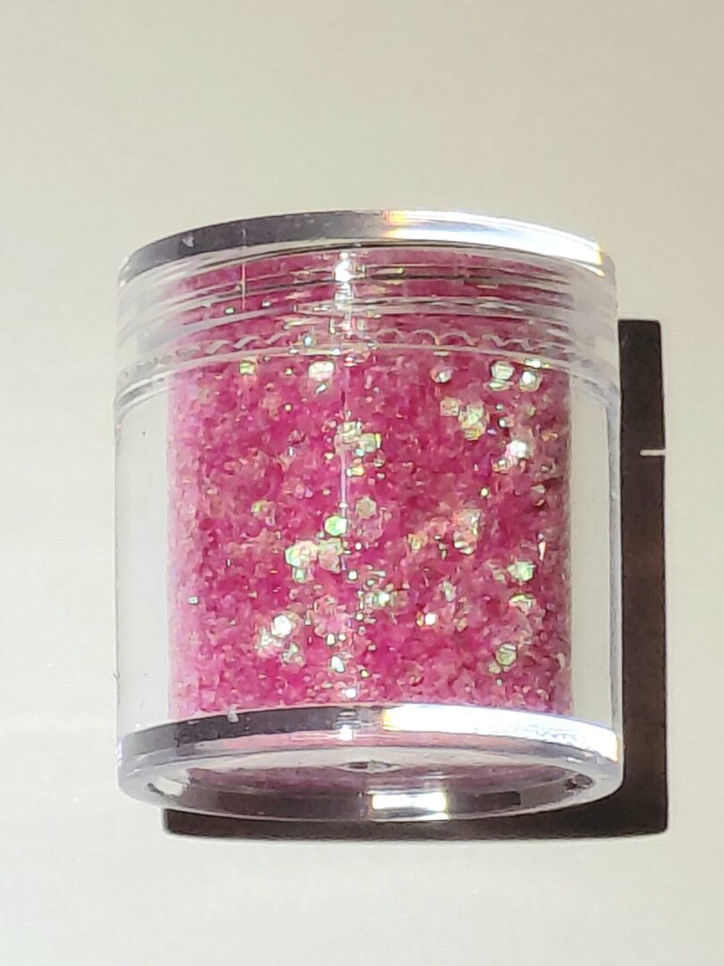 Glitterpulber roosat tooni. Keeratava korgiga plastikpurgis.