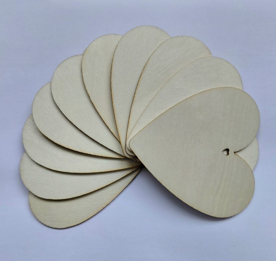 Vineerist südame kujuga toorik. Komplektis on 10 tk toorikut + 10 takupaela. Südame tooriku mõõdud on: 8 cm x 8 cm (pikkus× laius ülevalt). Sobib käsitööks (vaigutööks, värvimiseks, kaunistamiseks litrite, pärlite vms) või ka koheselt jõulukaunistuseks.